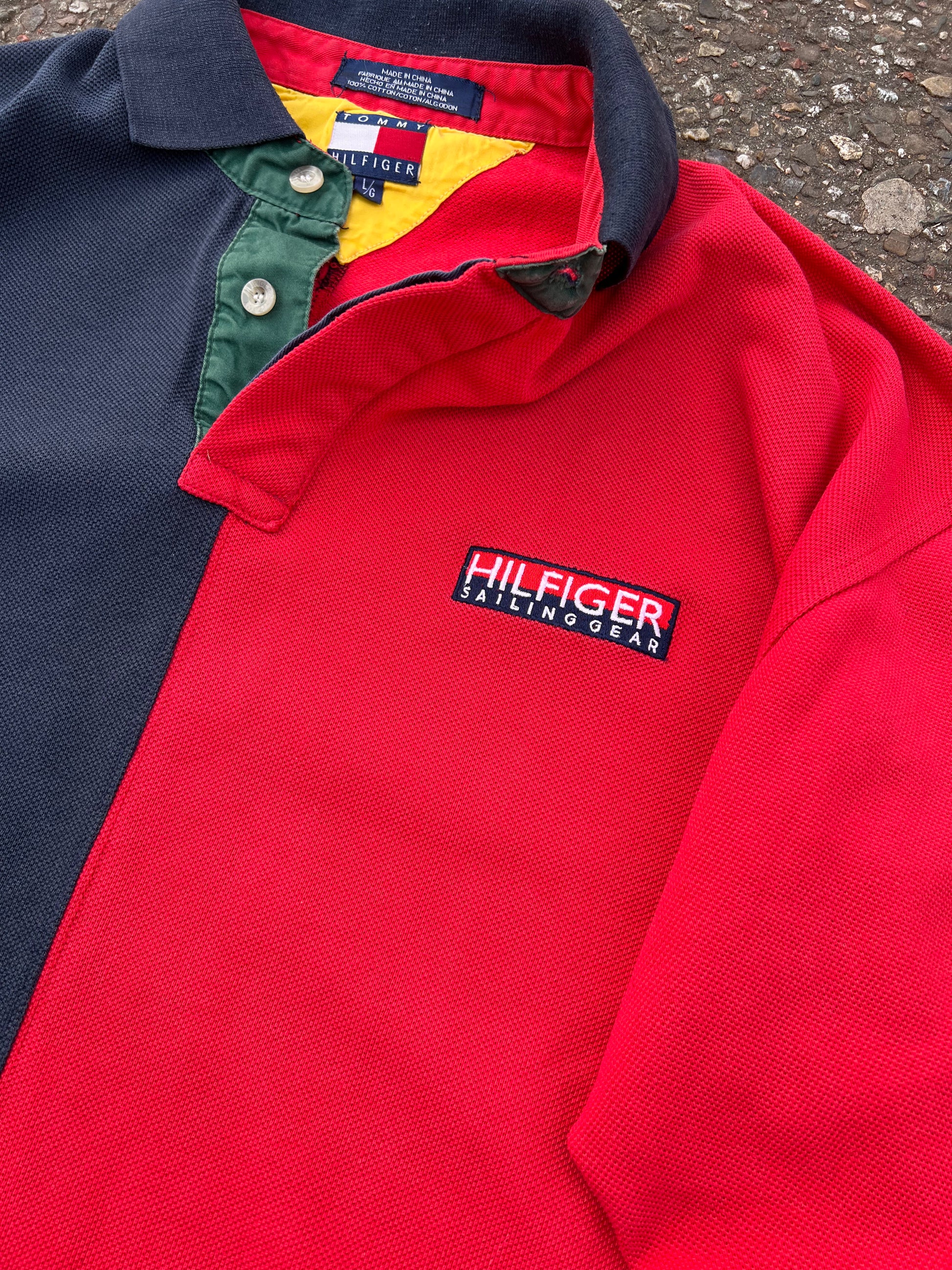 Vintage 90s Tommy Hilfiger Sailing Split Color Rugby Polo